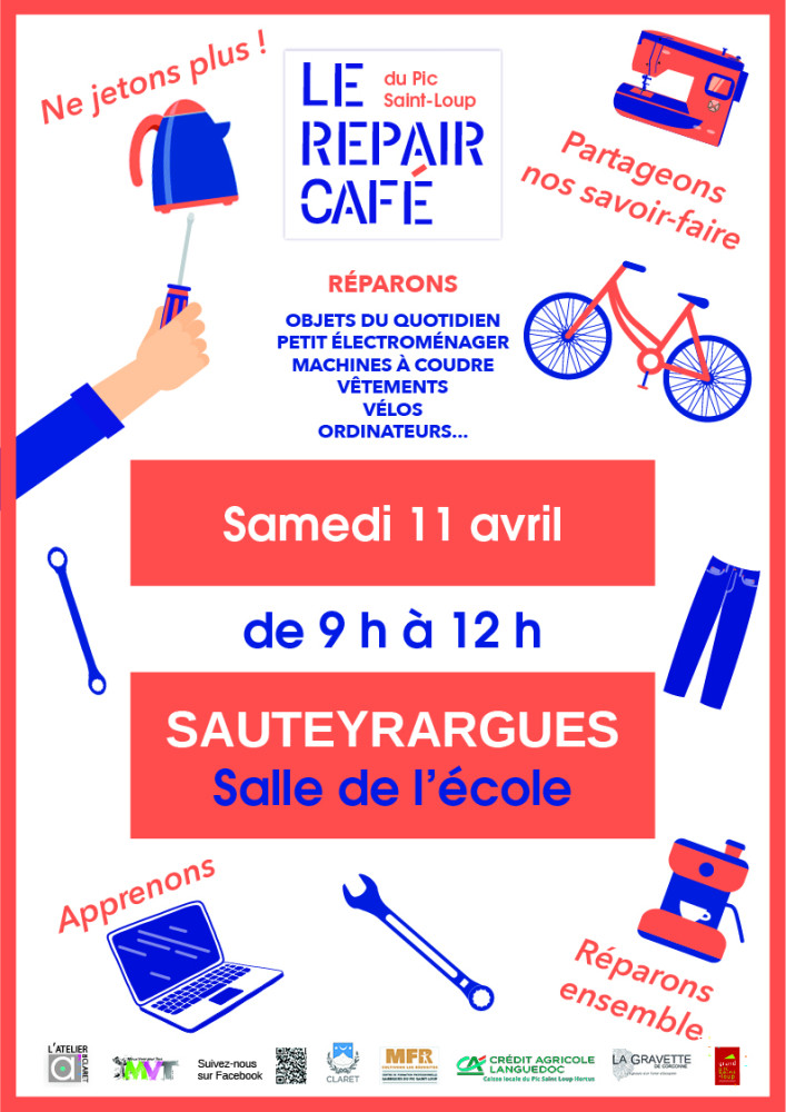 >>> Contactez-nous par mail : repaircafedupicsaintloup@latelierdeclaret.fr >>> Suivez-nous sur facebook en cliquant ICIou en scannant ce QR-code