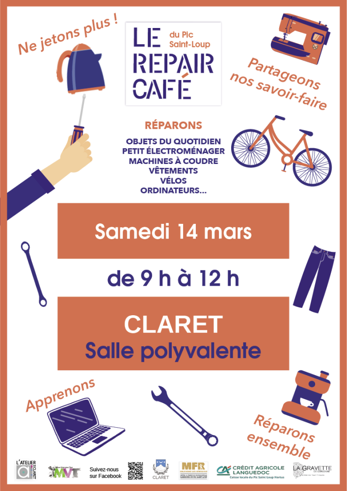 >>> Contactez-nous par mail : repaircafedupicsaintloup@latelierdeclaret.fr >>> Suivez-nous sur facebook en cliquant ICIou en scannant ce QR-code